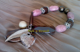 Pulseira com Pedras Resinadas e Ping. Diversos